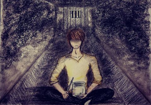 Later, after everyone else is asleep, I sit cross-legged in the far corner of the cell. It’s one in the morning. The cell is cramped but intimate. It’s slightly damp, thanks to the bathroom next door, and only a dim bulb lights the nighttime darkness. We call it “the kitchen” because it’s festooned with tupperware containing vegetables, onion, garlic, spices and all manner of other bits and pieces for cooking.