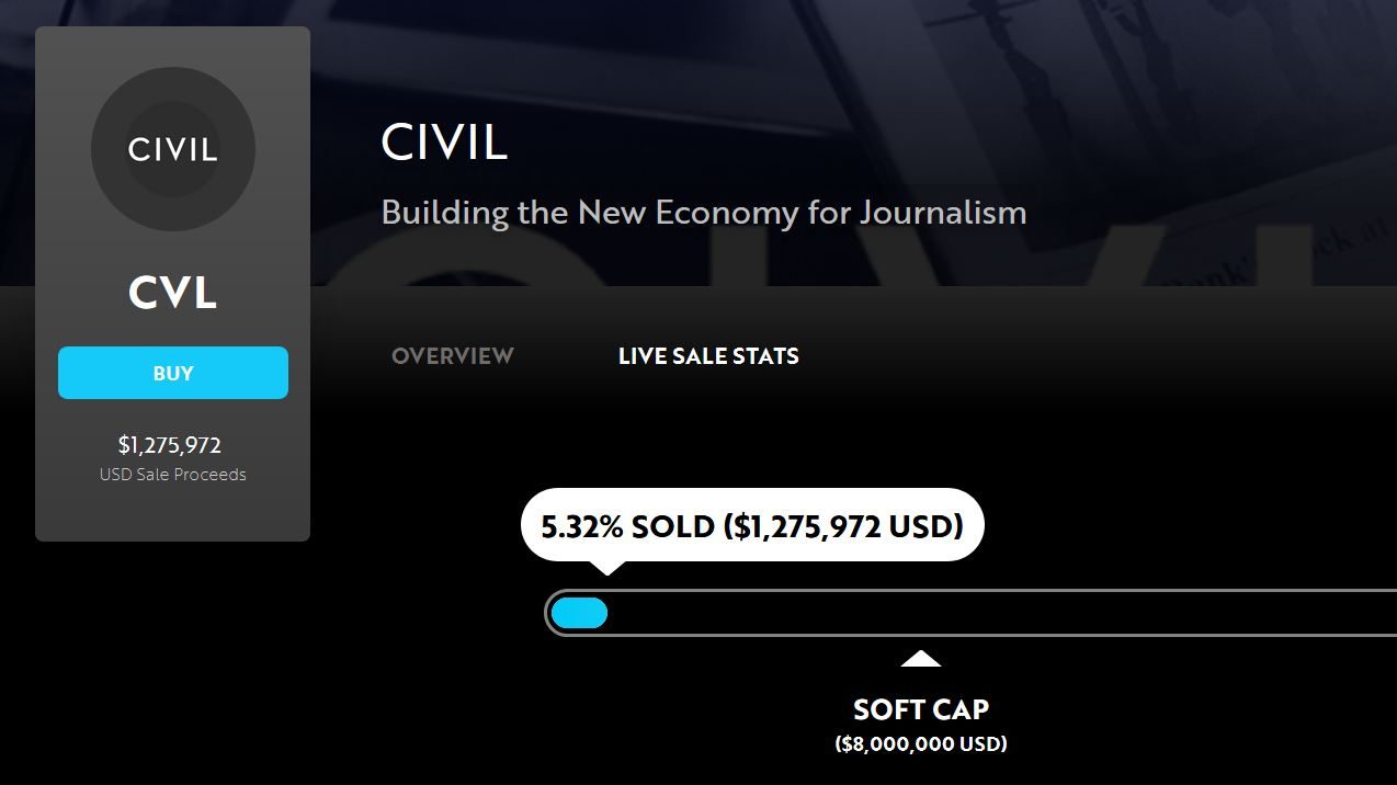 Civil will need to generate at least $8 million in this initial coin offering for the sale to go forward. (If they fall short, everyone gets their money back.) As of right now, one week and about two hours into the sale, it’s only raised $1,264,841.