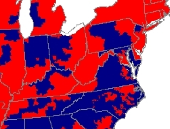 By the same token, the “fact” that West Virginia is Republican is the same kind of freshly-minted data point as the idea of the “red state” itself, something everyone has forgotten didn’t used to be the case. West Virginia wasa “red state” in 1996 because it voted for Bill Clinton, and in 1996, Democratic victories were marked in red. However natural and permanent it seems now, the entire red-and-blue-states cliché wasn’t yet a thing in 1996; only after the 2000 election—or, rather, after the supreme court gave the election to the loser in the popular vote—did it become the kind of platonic opposition it has become for clever political analysts. Before that, these were just colors on maps, and marking Democrats as red made as much sense as blue, perhaps more. “Red” has often stood for labor, and in West Virginia, red bandanas still carry that meaning.