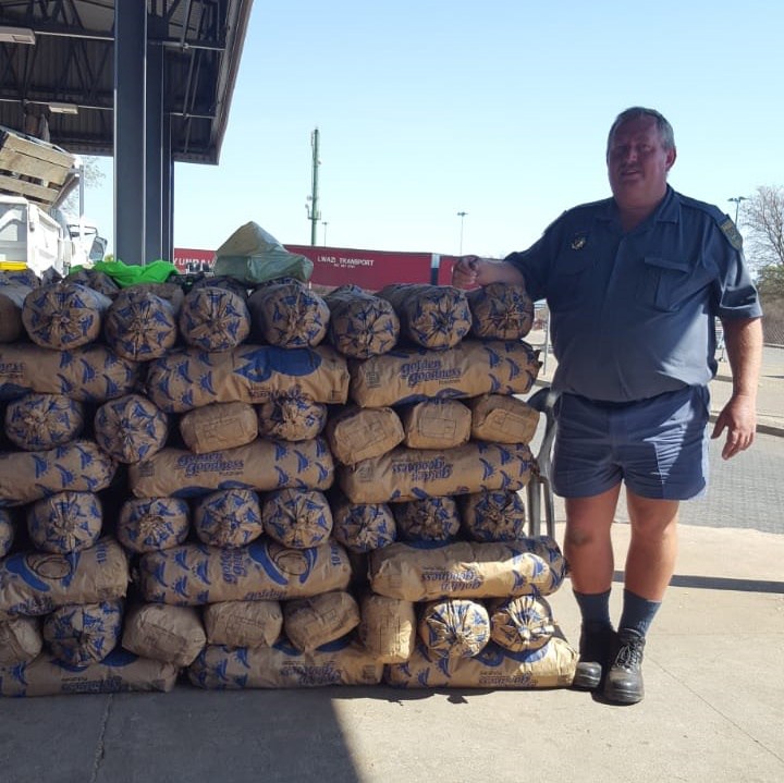 This South African policeman is not posing with sacks of potatoes. Hidden away in the bags, intercepted at the South African border with Botswana early this month, are thousands of marine snails — to be more specific, their dried feet.