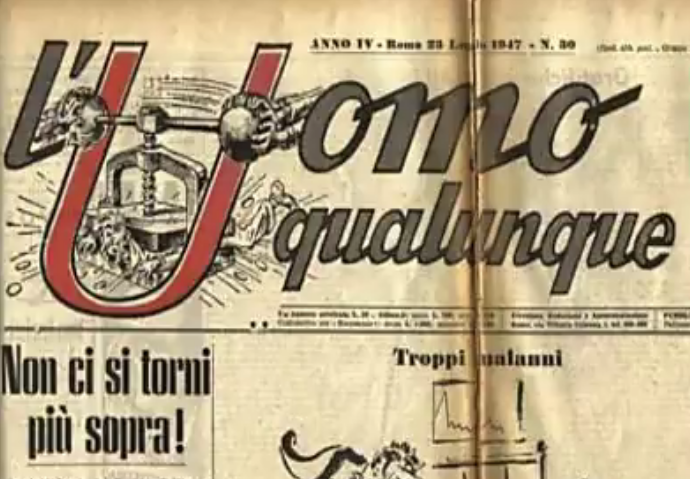 Unable to gather its antagonistic views on realpolitik, its ideological direction, and the foul-mouthed rhetoric of its newspaper into a coherent agenda, Giannini’s party soon lost its appeal, and ended up making improbable allegiances with hardcore monarchists and fascist nostalgics that led nowhere. By June 1948, with the new national elections, Giannini’s movement had dissolved, its electorate re-absorbed by the traditional Liberals and Democratic Christians. Yet the legacy of this one-hit political wonder is one that many may argue is even more lasting than political glory: a word.