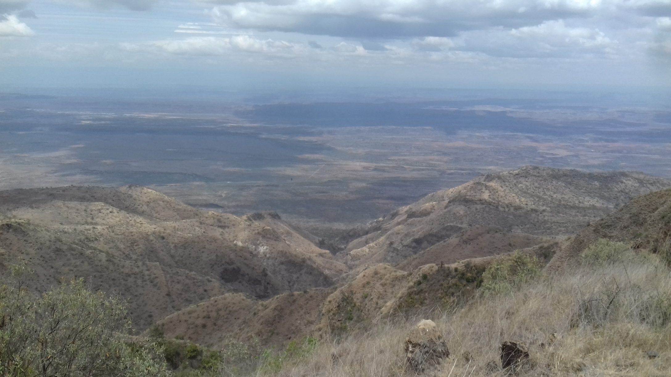 At Ole Sekut we could look down on the undulating slopes. The flat ground further away was white, brown, and green patches. Beyond these patches, Lake Magadi was visible. Magadi and Olorgesailie have always seemed so far away from Nairobi but I’d woken up and was on a hill looking at them. We set down our bags and had our lunch under a thorn tree while staring at our surrounding. It was as if, a person standing at the edge of the hill we were sitting on could tip over and roll all the way to the flat ground below with the white patches. If it wasn’t for the evidence of wild animals along the trail I might have tried to stay longer. Our next destination was a cave along our descent from Ole Sekut.
