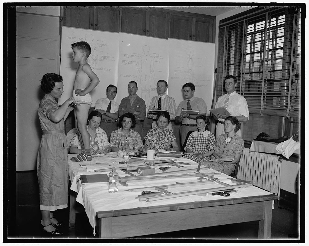 An exceptionally well-educated woman, Ruth O’Brien had two degrees in chemistry and one in law and already inaugurated the study of textile chemistry at Iowa State College when she was hired by the BHE in 1923. In her role at the BHE, O’Brien lobbied relentlessly for textile standardization that would empower women to make informed purchases, and would mastermind the first national attempt to empirically devise standard garment sizes. In the 1930’s, she secured federal support, directing WPA workers to collect dozens of body measurements from thousands of people: 150,000 children between ages four and seventeen were measured in 1937, in more than a dozen states, and in 1939-1940, 14,698 women were measured for weight and 58 other measurements deemed of “use in pattern and garment construction.”