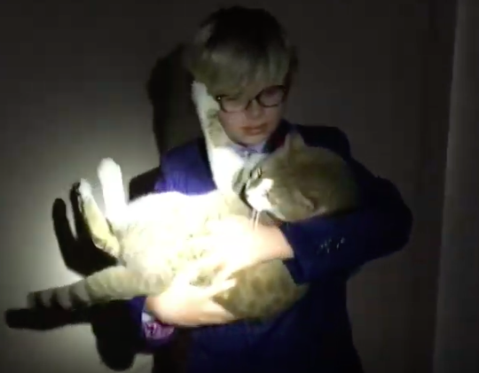 Ten-year-old Roy Gano loves his cat and spinning buildings.