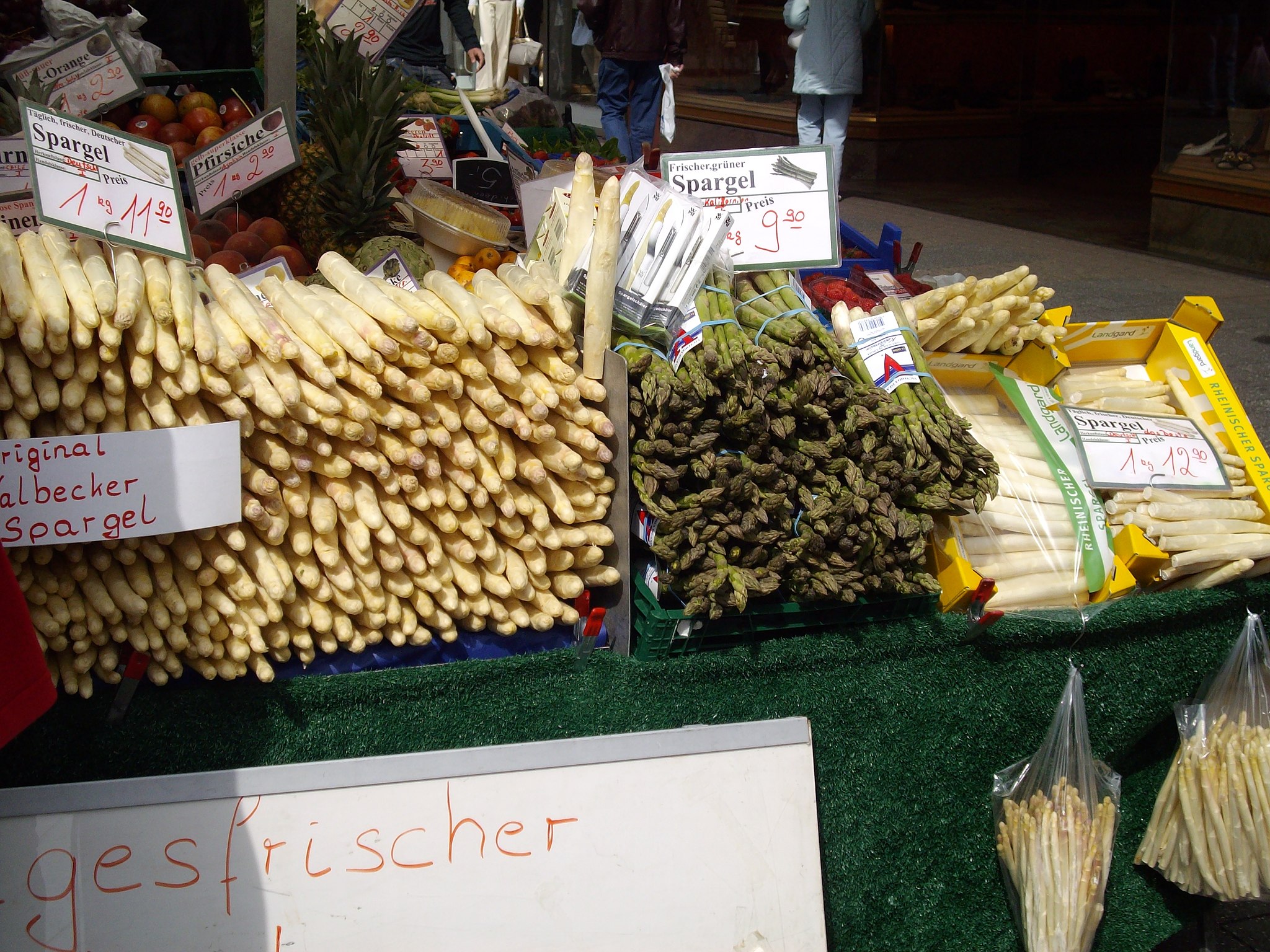 We spotted a sign for a farm shop that was serving white asparagus, currently in season. White asparagus always creates a frenzy across the country for a few months. After six years of living here, the appearance of the creamy bundles in the supermarket aisles is now indelibly linked with the end of winter. Patrick and I headed off on a detour to get our spargelzeit fix, finding ourselves surrounded by Germans with small dogs and large cars parked nearby. The straight couple sharing our table ordered two beers, and when the waitress brought them over, she made a joke, pretending that she thought the small one was for the man. The three of them laugh, loudly. Patrick and I looked at each other, like: what the fuck.