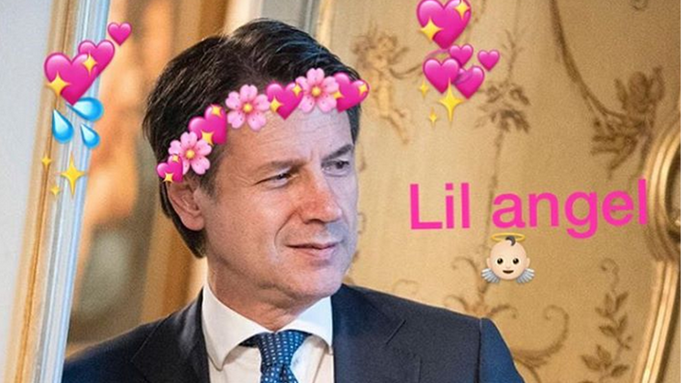 Screenshot: InstagramAnd for some weird reason possibly linked to the fact that everyone is homebound since February, he’s become a kind of sex symbol. Not joking, no, there are kawaii memes of him, and a new phenomenon called “Le Bimbe di Giuseppe Conte” (Babes for Giuseppe Conte). His Facebook page swells with comments after every live-stream: One can now find girls posting pictures of themselves getting all dressed up and in high heels to watch him talk. They say, only half-joking, that they’re “wet” for him, that they “stan” him, and quote de Saint Exupéry’s The Little Prince to excuse him being late: “For instance, if you come at four in the afternoon, I’ll begin to be happy by three”.