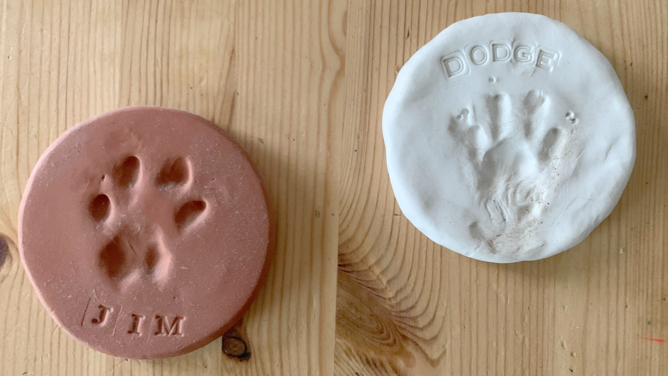 Finally, after nearly a half hour, she left us. I signed the paperwork and paid $300 for the visit. They handed me a ceramic paw print made from Dodge’s lifeless paw. It shares a spot on a shelf with Jim’s print.