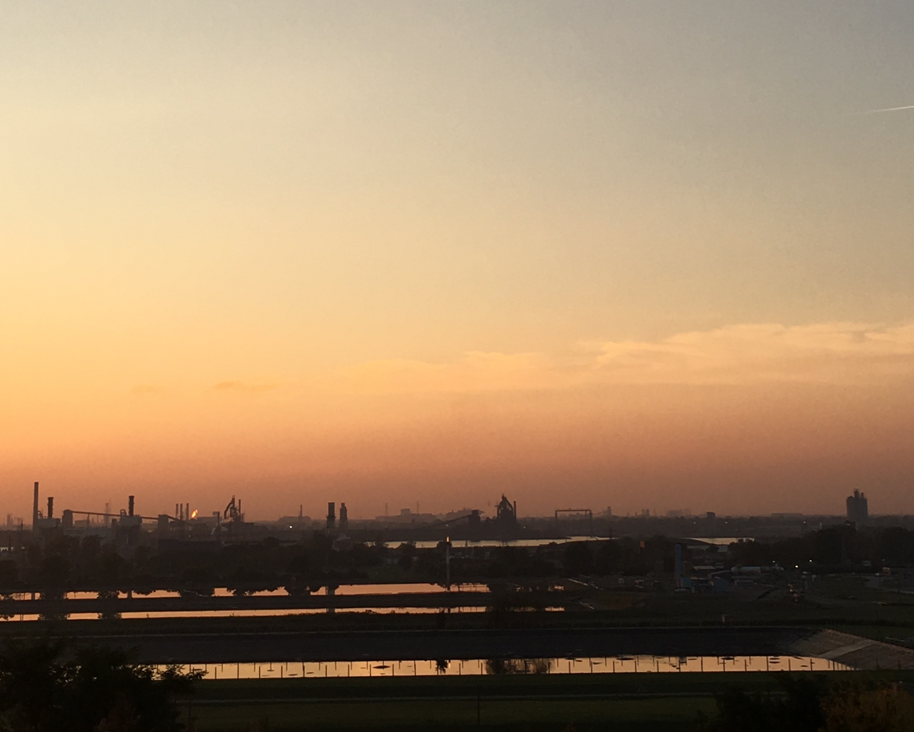 From the top of the hill at Malden Park you can see the flare pits across the street, then the Ambassador Bridge to the north, and Detroit in the distance.