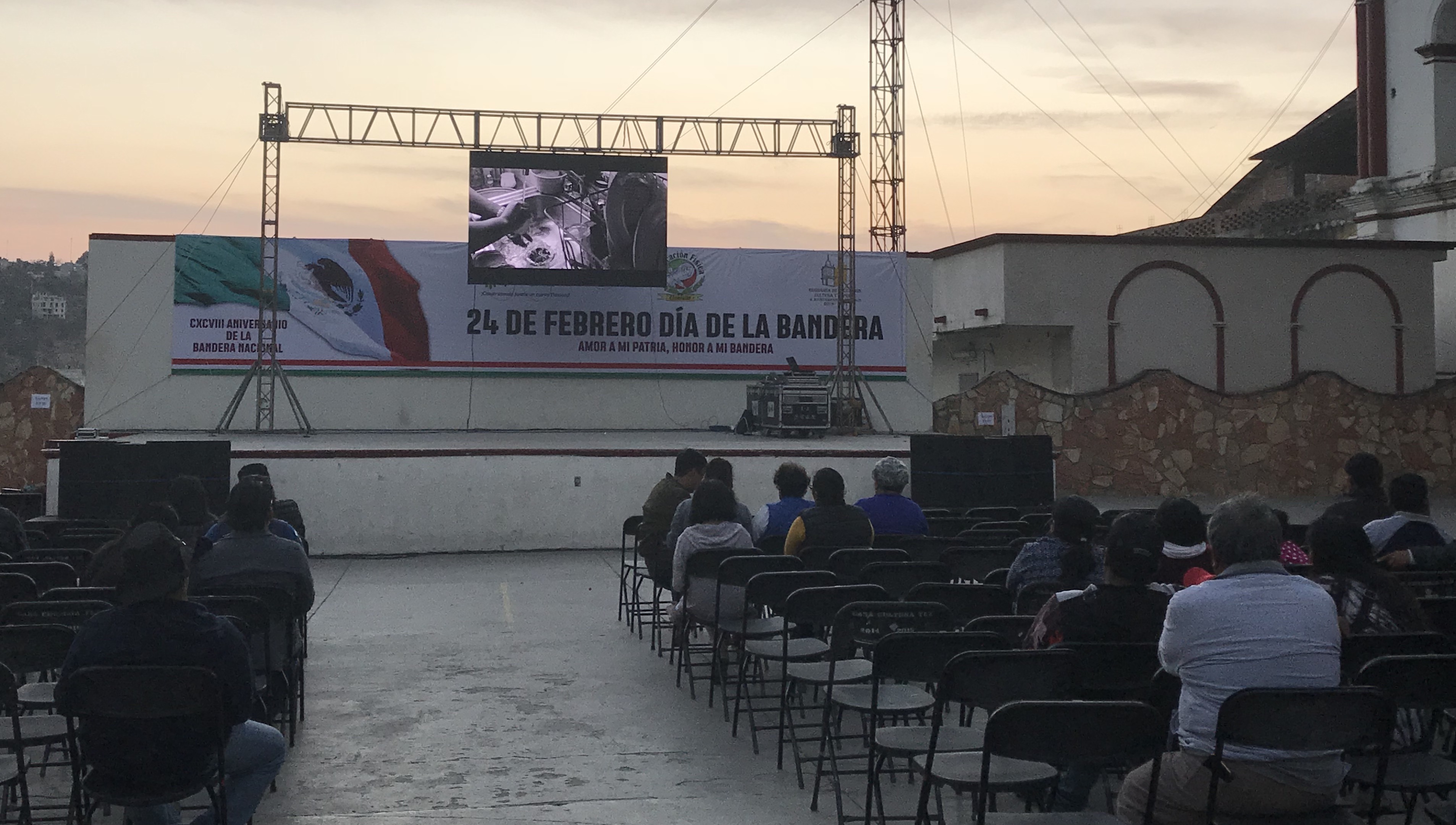 Además, los Oscares tuvieron la mala fortuna de coincidir con el Día de la Bandera en México. Así que la mayor parte del día, la plaza central de Tlaxiaco estuvo ocupada por alumnos de escuelas secundarias y militares realizando extensos homenajes a la bandera; formaciones militares, bandas de guerra y uniformes impecables llenaron este lugar desde la mañana hasta pasadas las 6 de la tarde.