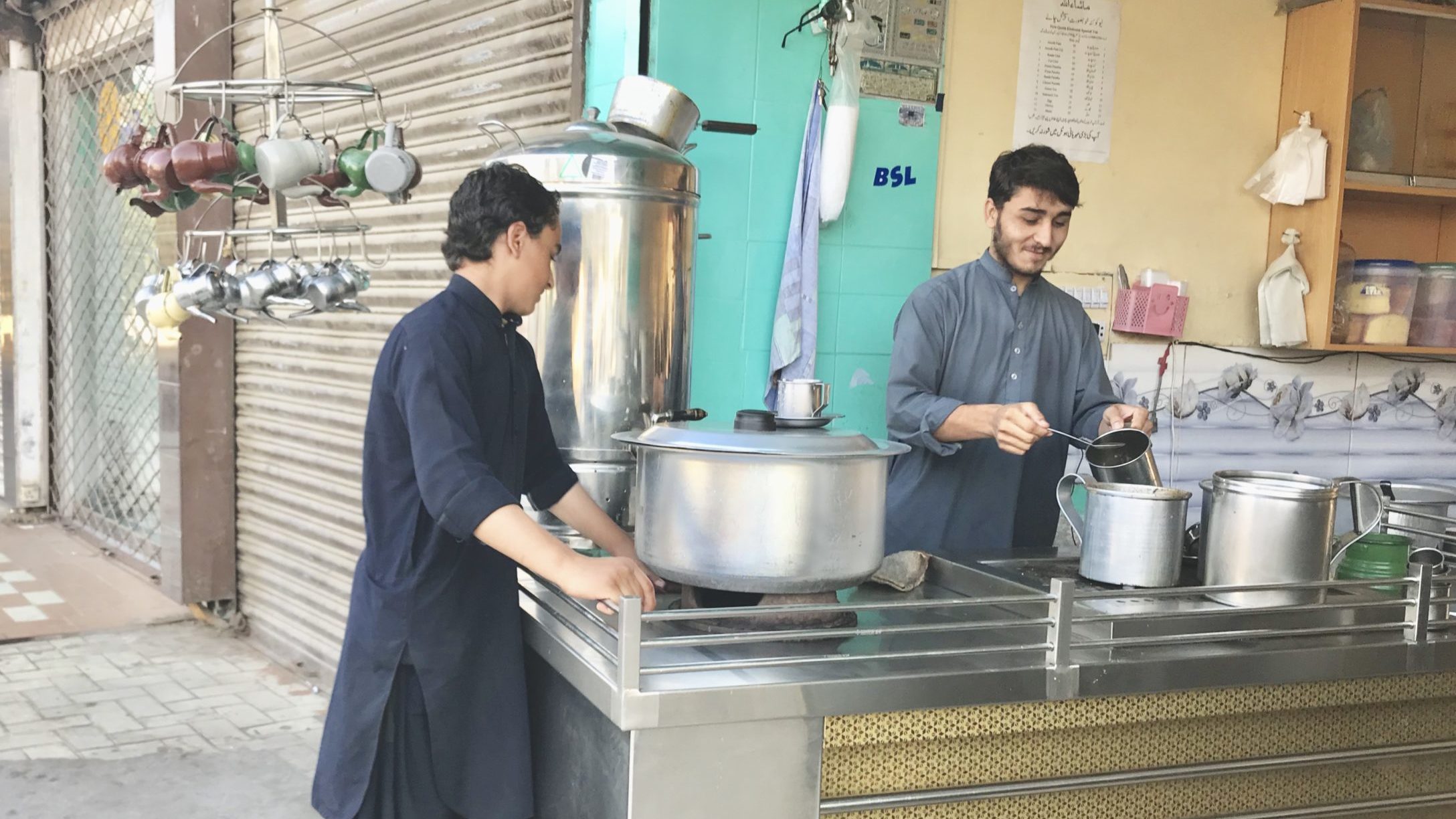 Between 2 p.m. and 4 p.m., everyone gets sleepy in Karachi. It’s the post-lunch lull and while some people take a nap during this break, others refuel with chai. There are tea shops, chai wallahs, on every street corner. They serve different variations of chai: masala chai, doodh paati chai, noon chai, and a version of green tea called kahwaw. Each tea originates from a different cultural group and region.