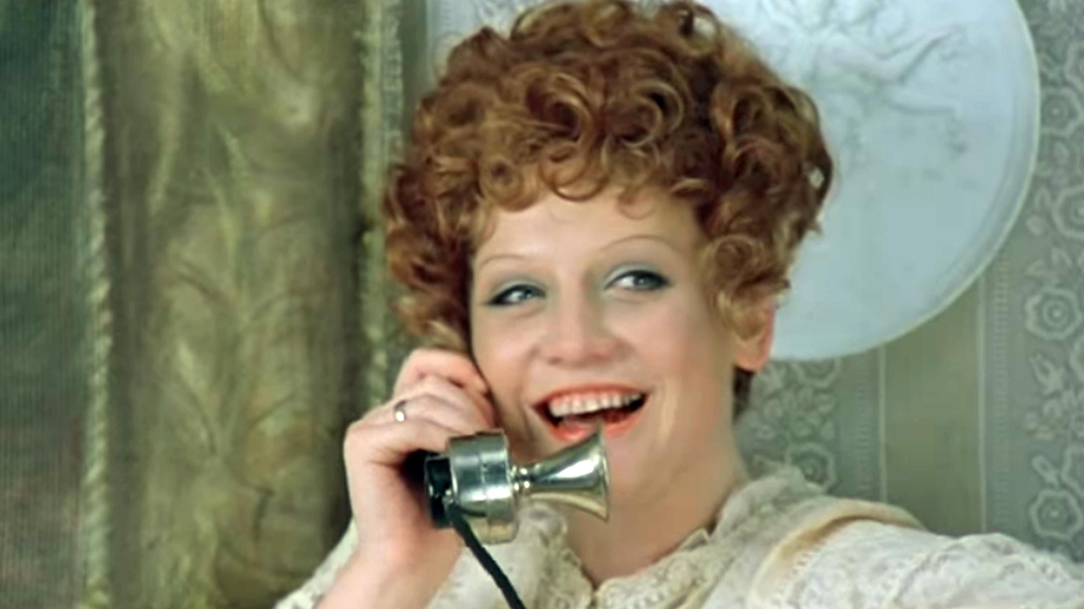 A kindhearted Soviet everyman named Semyon (played by Gaidai regular Yuri Nikulin) reluctantly goes on a cruise to the Mediterranean and gets mixed up in a jewel-smuggling scheme. The Diamond Arm (1968) plays on Gaidai’s favorite themes: the honest virtue of ordinary people, the comic harmlessness of greedy villains, and just under the surface, the state and its police apparatus as a benevolent natural fact. The supporting characters are finely drawn, including Gyesha (played by Andrei Mironov), a charming fop who moonlights as a model and has icons in his flat, and Semyon’s stoic wife Nadia, played by Gaidai’s IRL wife Nina Grebeshkova. Many of the film’s jokes became catchphrases for generations of Russians—for example, a nosy house committee member notices Semyon constantly taking cabs offered by the police, and suspiciously notes, “Our people don’t take taxis to the bakery.”