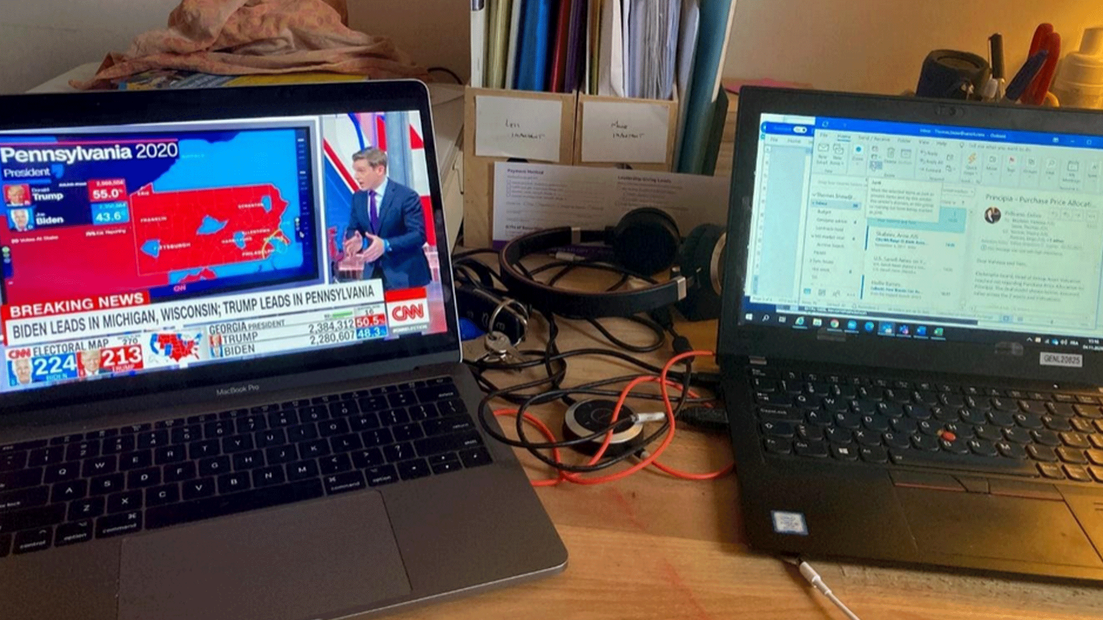 As I did work Zooms, primary blue and red polygons flashed on CNN on the other laptop.