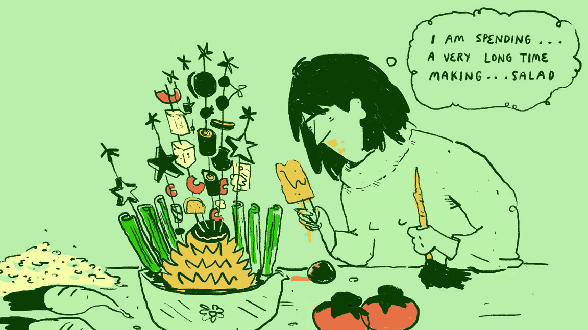 "And, uh, the meaninglessness of eternity in the wrinkled face of that… biting monster."