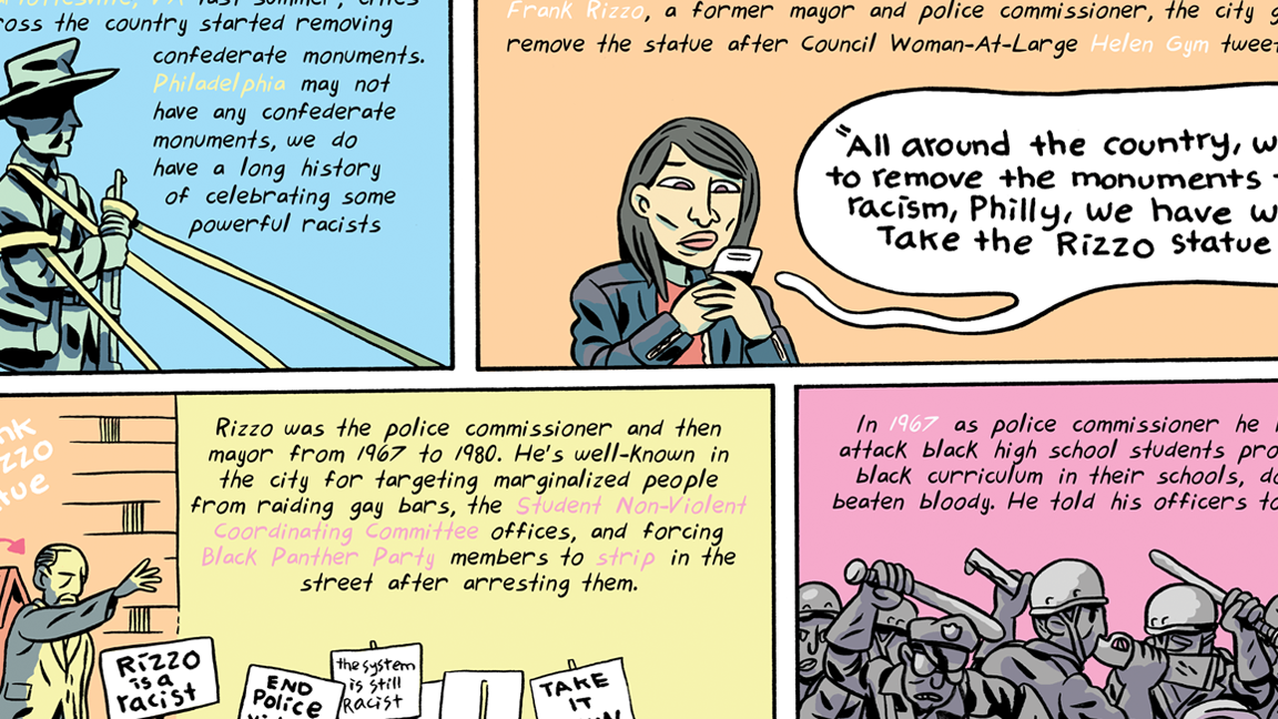 What to do about the most vandalized piece of public art in Philly? Cartoonist Ben Passmore draws out the Rizzo Mural.
